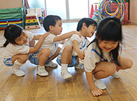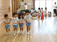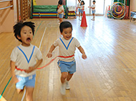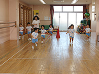 延長保育オプション…伝承あそび トピックス 2019-5-1 掲載 2月6日(水)は伝承あそびで紙テープ走といもむしゴロゴロをしました。身体のバランスを保ちながら、協同を伴う可愛いいもむしになったり、紙テープを体に巻いて切れないように歩いたり、走ったり、時にはお友達とテープを繋いで協調性をもって走ることの難しさを知り、楽しさを分かち合えるあそびだったと思います。 2018 最近の トピックス 一覧へ ページ上部に戻る