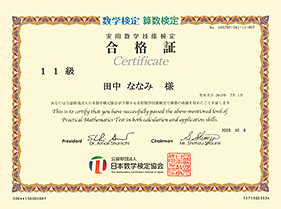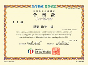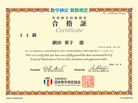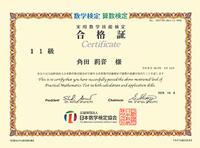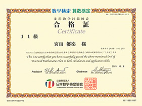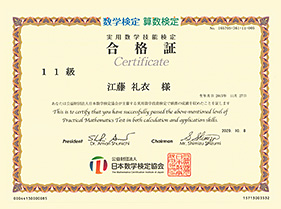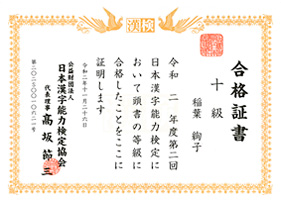 当園では運動はもちろん、学習にも力を入れています。漢字検定・算数検定は園児たちにとっても、大きな一つの目標になっています。卒園して小学生になったお友だちも受けてくれています。今回合格したお友だちの賞状をご覧ください。 算数検定 漢字検定